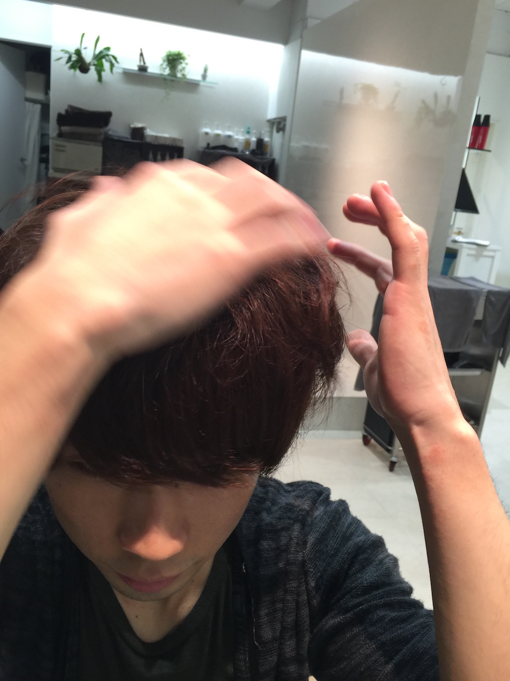この時、指先を頭皮近くまでさしこむと立ち上がりがキープしやすいですよ