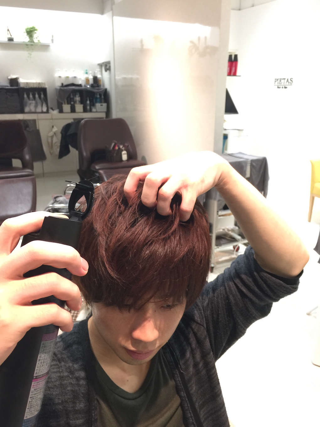 5 最後にスプレーをかけて長時間持つようにセット