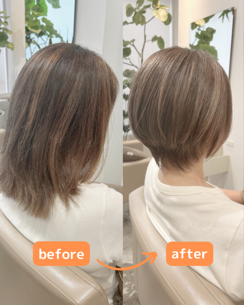 顎ラインのショートボブ+ナチュラルハイライトをご提案。