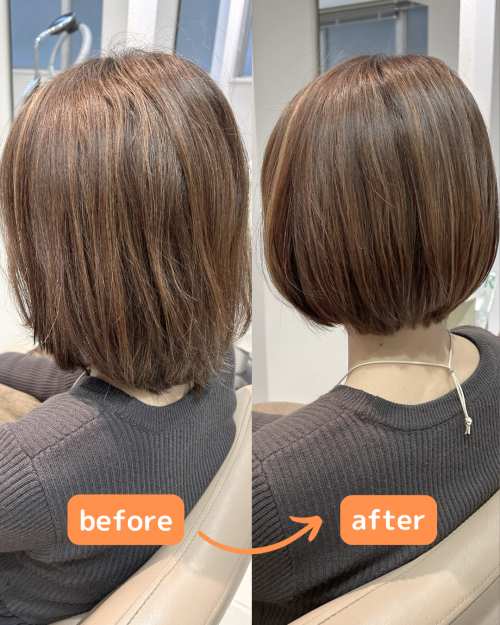 広がる髪を落ち着かせる髪質改善ボブ|ハイライトもきれいに見える方法